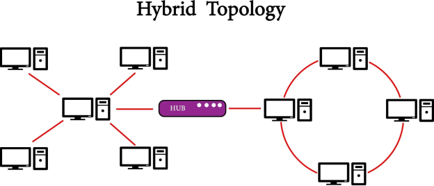 A hybrid topology is a network that combines two or more different topologies. For example, a star-bus hybrid might use a bus backbone to connect several star networks. Combines two or more topologies (e.g., star-bus, star-ring). Tailored to specific network needs.