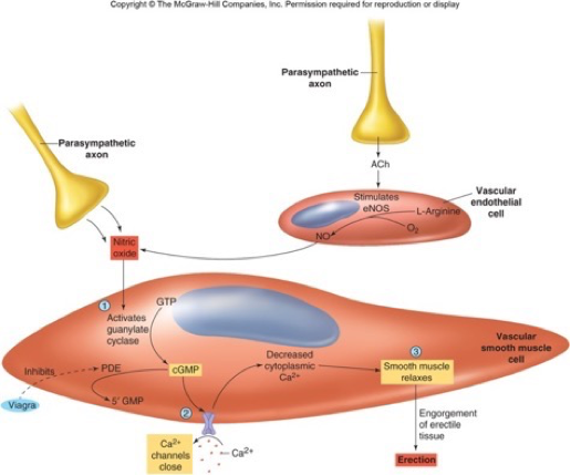 - Activation of parasympathetic nerves to the penis increases local nitric oxide (NO) release