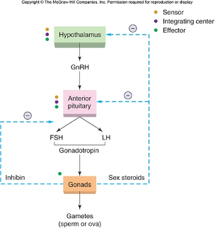 - Testosterone & inhibin → negative feedback.