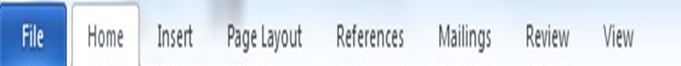 The top banner of features on Word is referred to as the Ribbon. The Ribbon includes the Ribbon tabs (just below the top blue banner) and specific commands for each Tab. Clicking any tab will take you to the Ribbon commands for that heading.