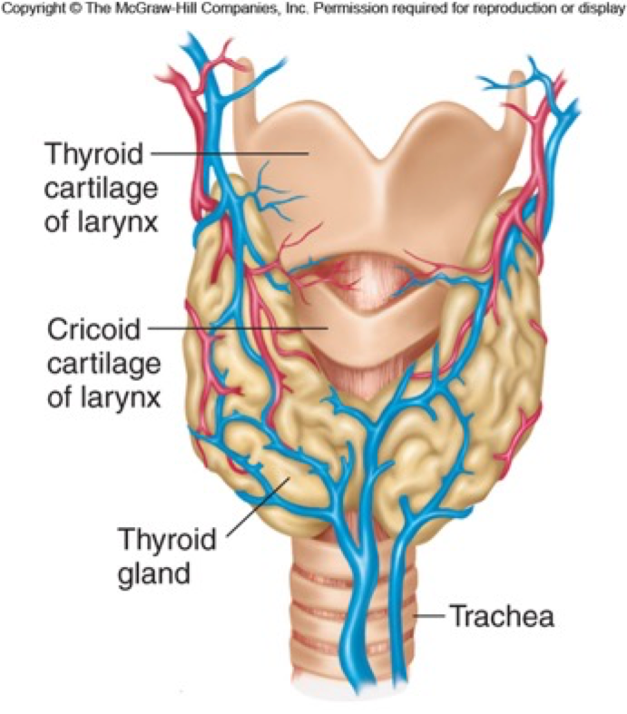 - Location: Anterior neck, below larynx, butterfly-shaped.