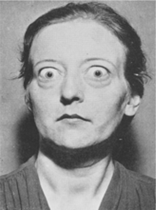 - Enlarged goiter may occur in people who do not have iodine deficiency (idiopathic nontoxic colloid or exophthalmic goiter -Graves’s Disease).