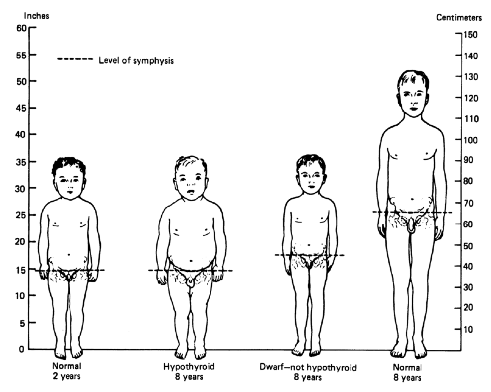- Cretinism: Hypothyroid conditions during fetal development result in impairment of growth and brain functioning.