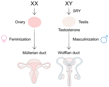 o Absence of SRY allows ovarian development to occur by default
