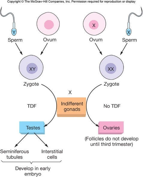 - Early embryo has indifferent gonads capable of developing into either testes or ovaries.