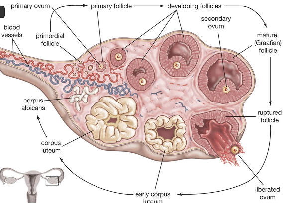- Rising FSH stimulates a cohort of primordial follicles to develop into primary follicles.