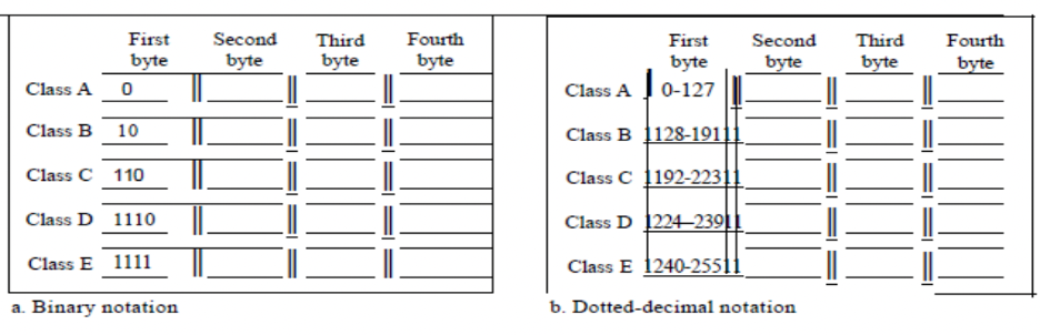 Historically, when an organization solicited a block of addresses, it was allocated one from class A, B, or C. Class A addresses were intended for substantial companies with numerous connected hosts or routers. Class B addresses were intended for medium-sized enterprises with numerous connected hosts or routers. Class C addresses were intended for small companies with a limited number of connected hosts or routers. The defect in this design is evident. A block of class A address is excessively huge for nearly any business. This indicates that the majority of class A addresses were squandered and remained unused. A block in class B is excessively huge, likely beyond the capacity of numerous firms that obtained a class B block. A block in class C is likely insufficient for numerous businesses. Class D addresses were specifically formulated for multicasting purposes. Each address in this category serves to delineate a certain set of hosts on the Internet. The Internet authority inaccurately forecasted a necessity for 268,435,456 organizations. This event did not occur, and numerous addresses were squandered as well. Finally, class E addresses were allocated for prospective applications; however, only a limited number were utilized, leading to more address wastage.